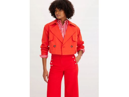 B.P.C płaszcz trencz czerwony z odpinanymi rękawami i odpinanym dołem