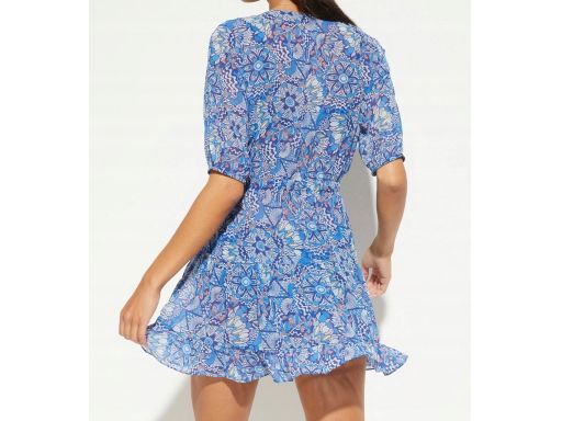 B.P.C plażowa sukienka szyfonowa niebieska we wzory z wiązaniem ^38
