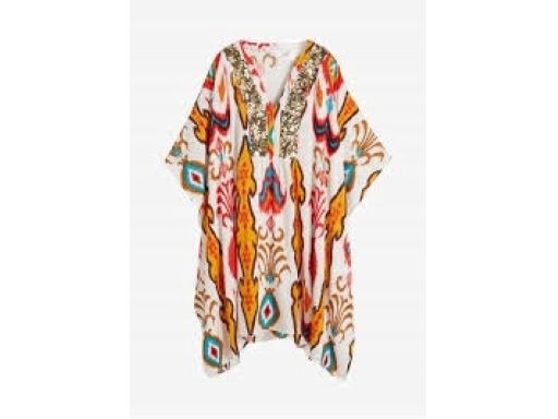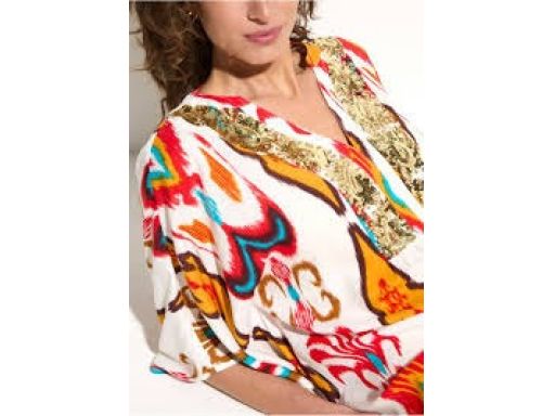 B.P.C plażowa tunika biała w kolorowe wzory z cekinami r.48/50