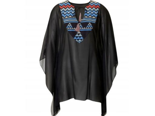 B.P.C plażowa tunika czarna z kolorowym wzorem przy dekolcie ^40/42