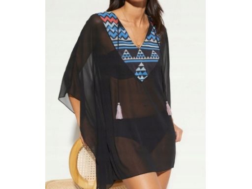 B.P.C plażowa tunika czarna z kolorowym wzorem przy dekolcie ^48/50