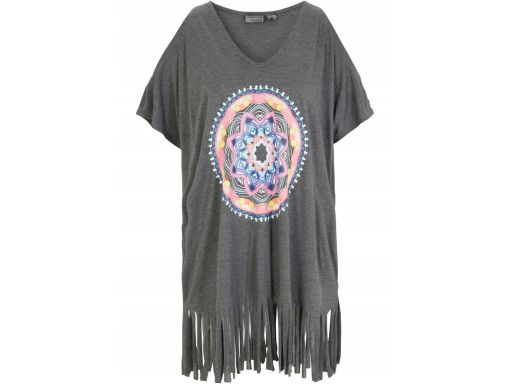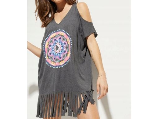 B.P.C plażowa tunika szara z kolorowym nadrukiem wiskozowa ^36/38