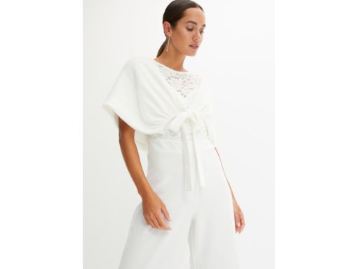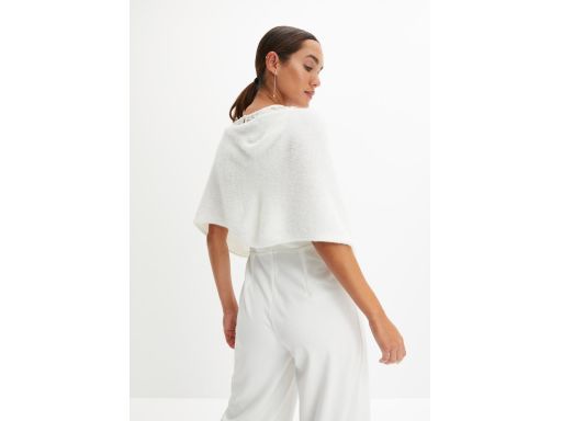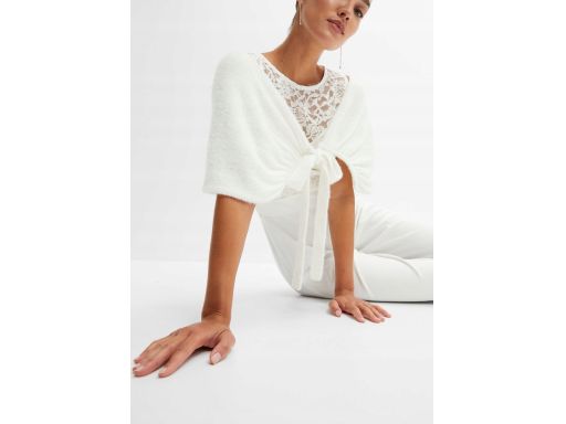 B.P.C poncho dzianinowe na ramiona z wiązaniem śmietankowe 56/58.