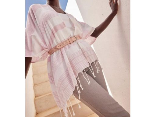 B.P.C poncho letnie biało-różowe bawełniane r.one sizePoncho z kolekcji B.P.C