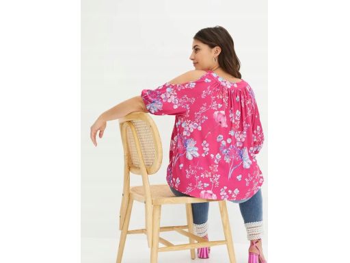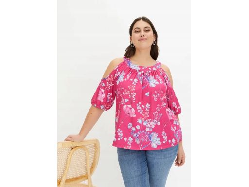 B.P.C różowa bluzka z nadrukiem odkryte ramiona 40/42.