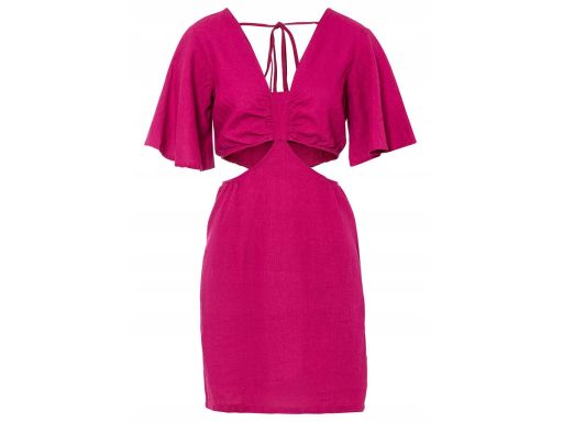 B.P.C różowa lniana sukienka z wycięciami r.46