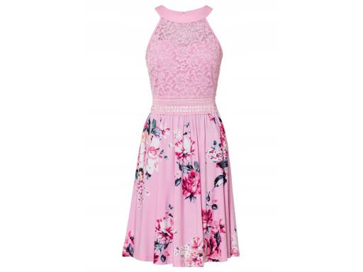 B.P.C różowa sukienka w kwiaty z koronką 46.
