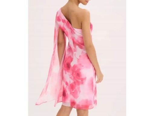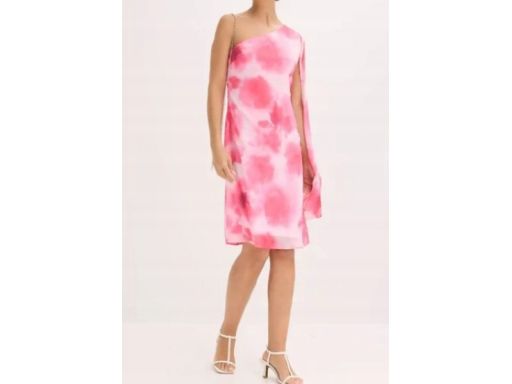 B.P.C różowa szyfonowa sukienka na jedno ramię asymetryczna ^48