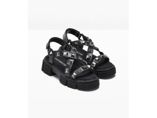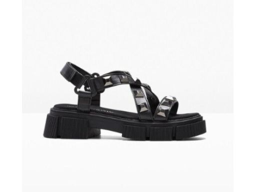 B.P.C sandały na platformie czarne z ćwiekami ^37