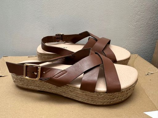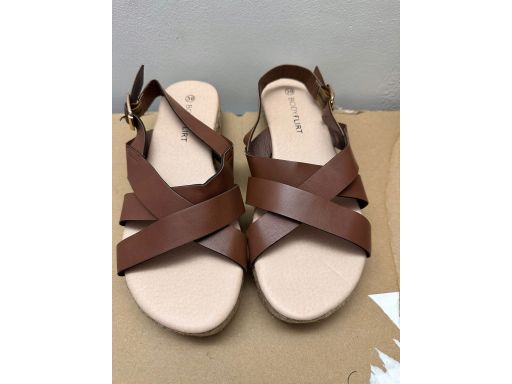 B.P.C sandały na platformie ze sznurka brązowe paski ^36