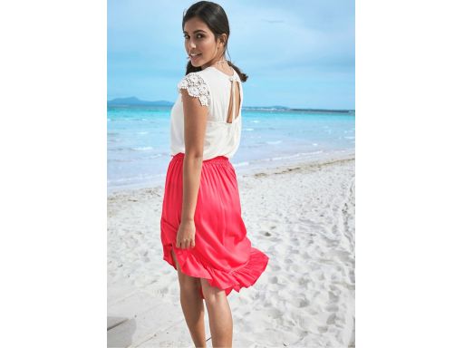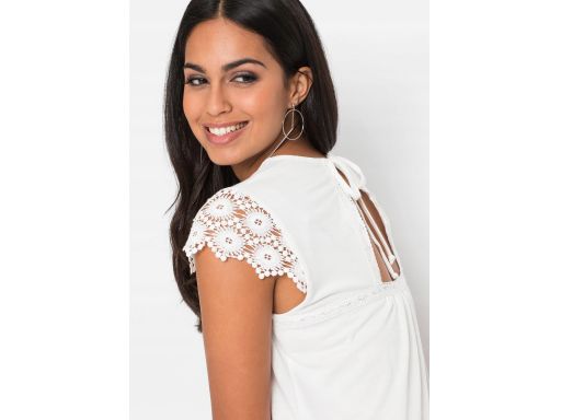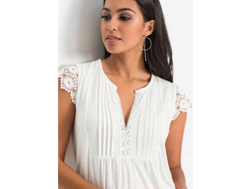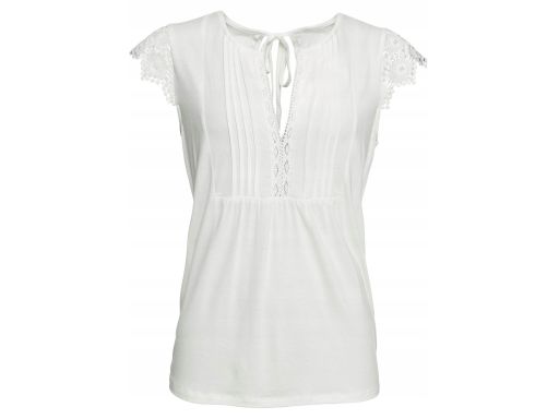 B.P.C śmietankowa bluzka plisowany dekolt z koronką ^32/34