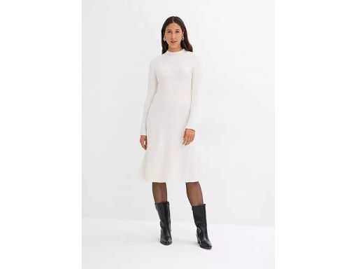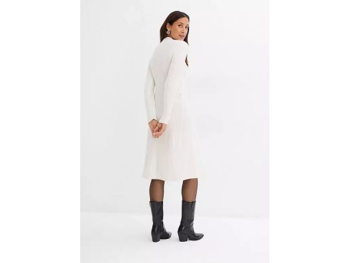 B.P.C śmietankowa dzianinowa sukienka prążek midi 44/46.
