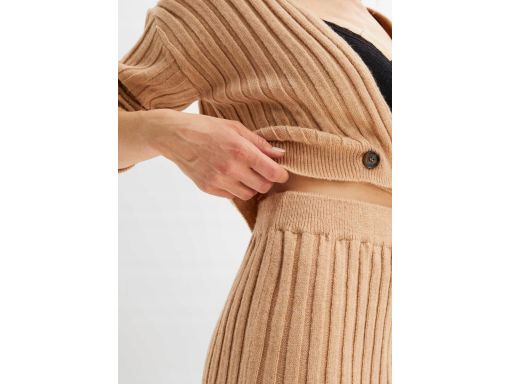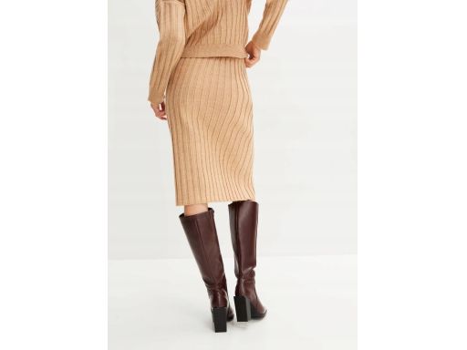 B.P.C spódnica dzianinowa midi beżowa prążkowana 48/50.