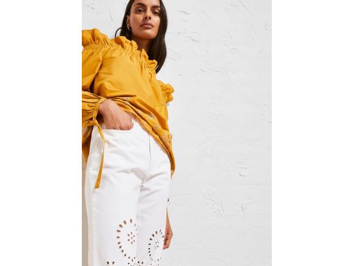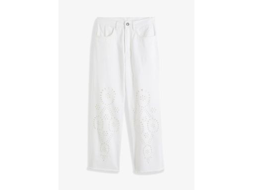 - na nogawkach wzorek z dziurek, ażurowy haft