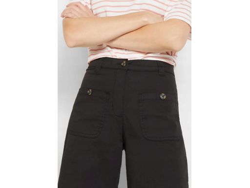 - zapięcie na zamek i guzik i lekko elastyczna guma w pasie