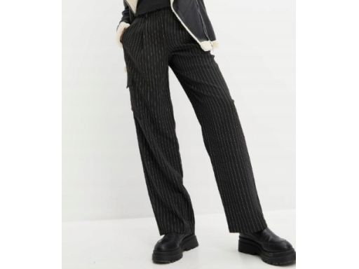 B.P.C spodnie eleganckie czarne w cienkie białe paski pionowe 40.