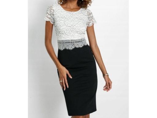 B.P.C sukienka 2w1 czarna z białą, koronkową górą r.38