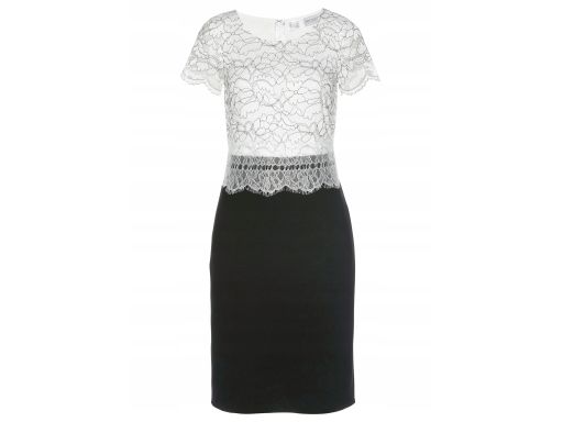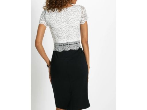 B.P.C sukienka 2w1 czarna z białą, koronkową górą r.38