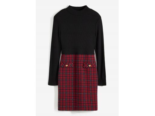 B.P.C sukienka 2w1 dzianinowa czarno-czerwona ołówkowa ^36/38