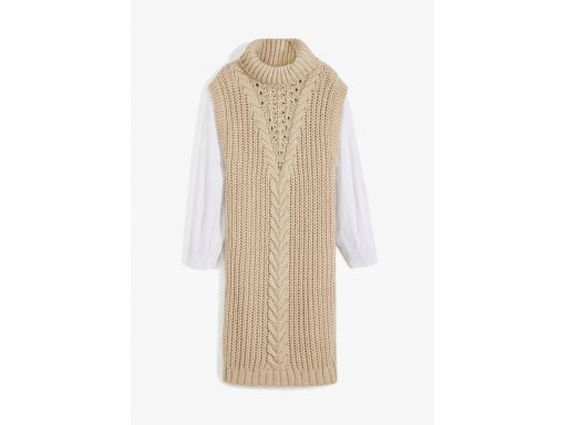 B.P.C sukienka beżowa dzianinowa z golfem 2w1 z koszulowymi rękawami 3