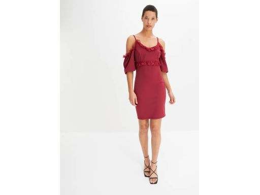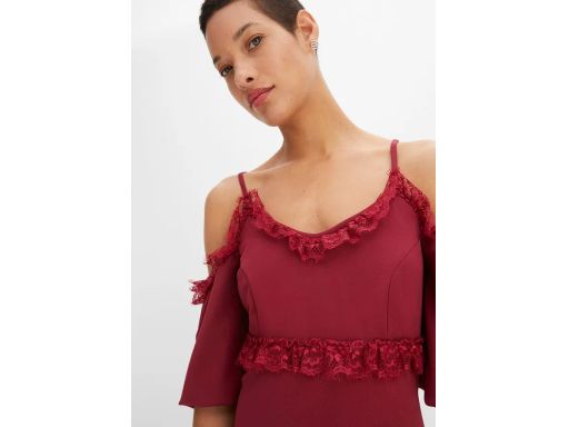 B.P.C sukienka bordowa odkryte ramiona koronka 40/42.