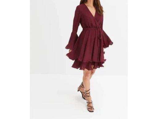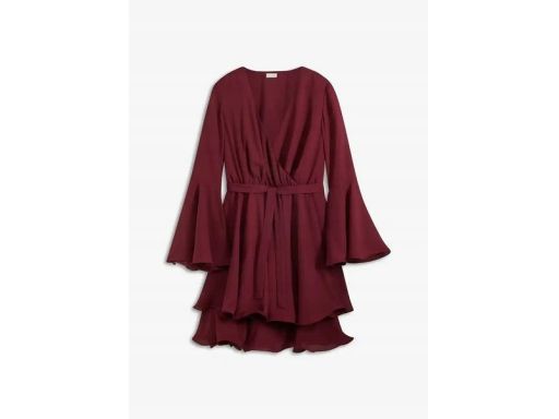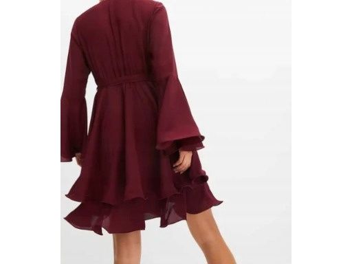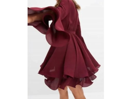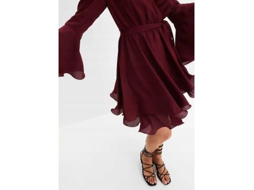 B.P.C sukienka bordowa szyfonowa z falbanami 44/46.