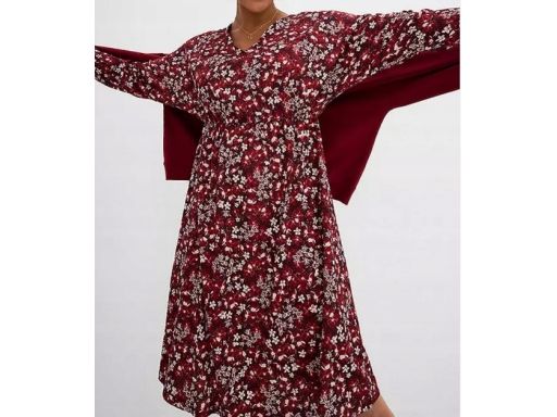 B.P.C sukienka bordowa w drobne kwiatuszki krepowana ^40/42