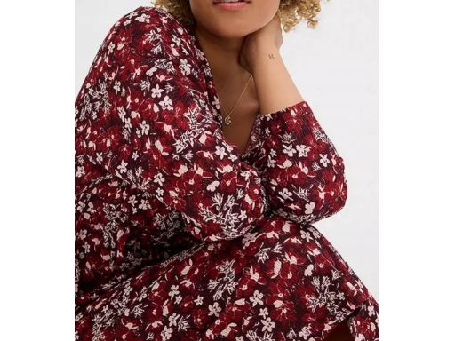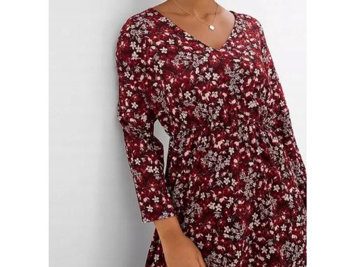 B.P.C sukienka bordowa w drobne kwiatuszki krepowana 44/46.