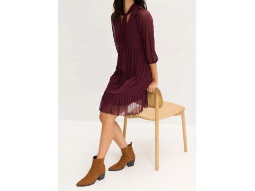 B.P.C sukienka bordowa z siateczki z krawatką r.48/50