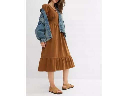 B.P.C sukienka brązowa midi z falbaną r.44/46