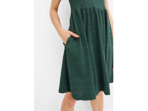 B.P.C sukienka butelkowa zieleń z ażurowym wzorem haftowanym ^48/50
