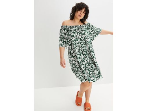 B.P.C sukienka carmen zielono-biała we wzory ^38