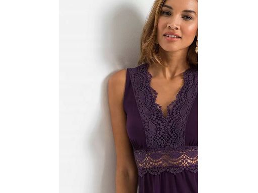 B.P.C. Sukienka ciemny fiolet z koronką ażurową mini ^40/42