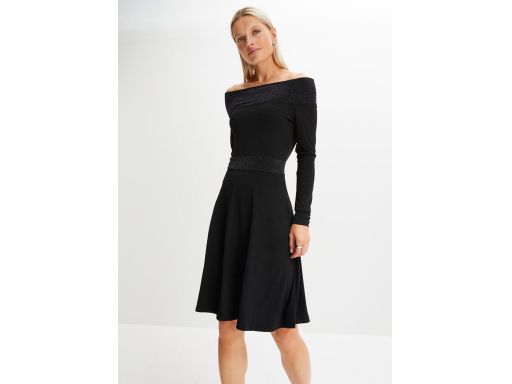 B.P.C sukienka czarna carmen z błyszczącymi elementami 52/54.