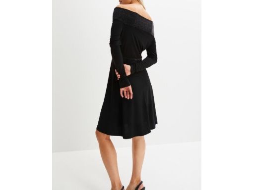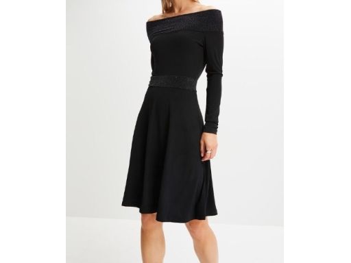 B.P.C sukienka czarna carmen z błyszczącymi elementami r.36/38