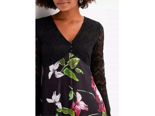 B.P.C sukienka czarna w kolorowe kwiaty z koronką r.36/38