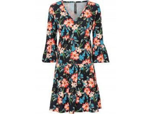 B.P.C sukienka czarna w kwiaty z falbaną r.32/34