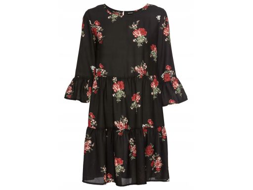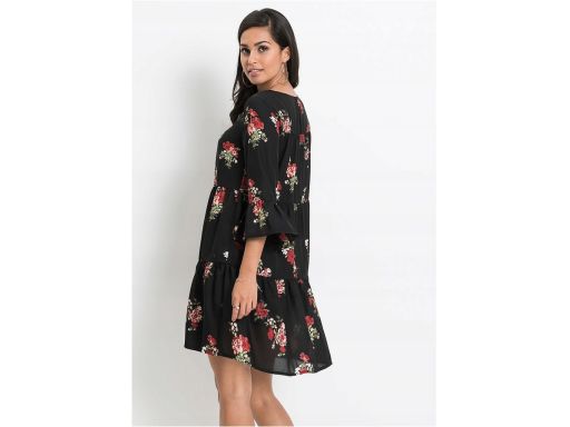 B.P.C sukienka czarna w kwiaty z falbanami 38.