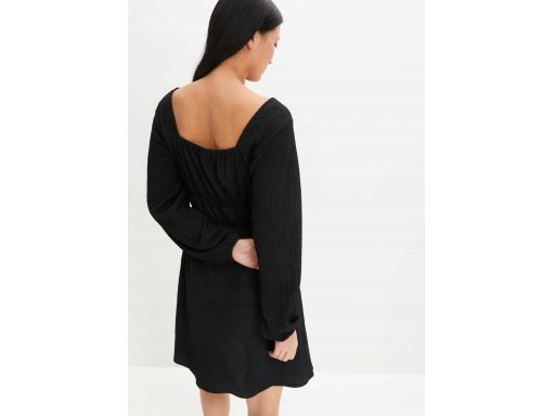 B.P.C sukienka czarna z krepy długi rękaw 44/46.