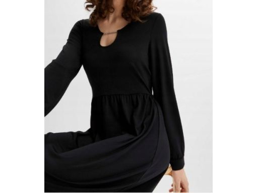 B.P.C sukienka czarna ze srebrnym łańcuszkiem w dekolcie 36/38.