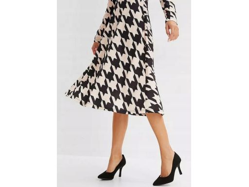 B.P.C sukienka beżowo-czarna we wzory midi r.36/38