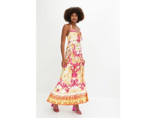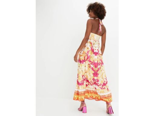 B.P.C sukienka długa, kolorowa we wzorki z wiązaniem na szyi 40/42.