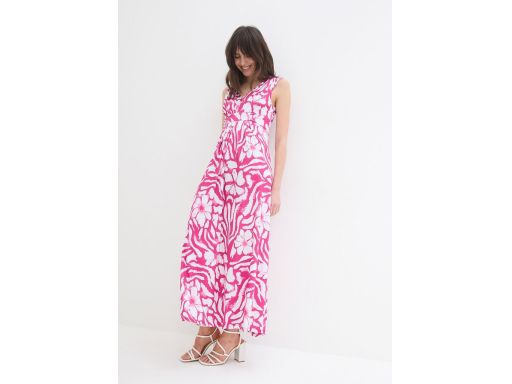 B.P.C sukienka długa maxi biało-różowa we wzory ^48/50