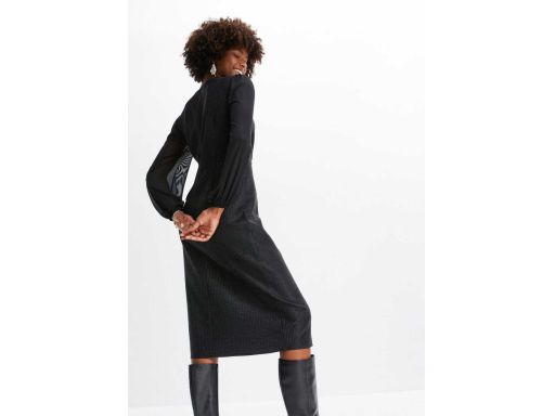 B.P.C sukienka duży dekolt z efektem brokatu midi czarna r.36/38