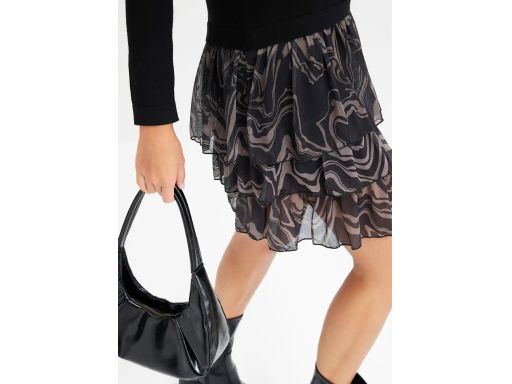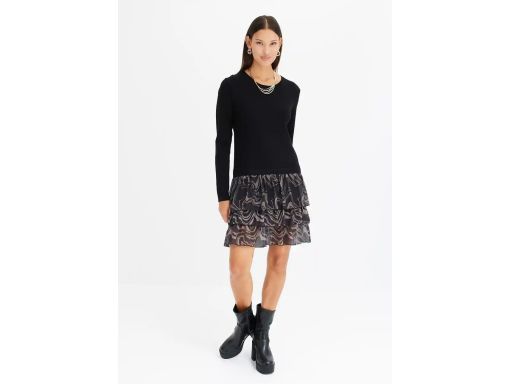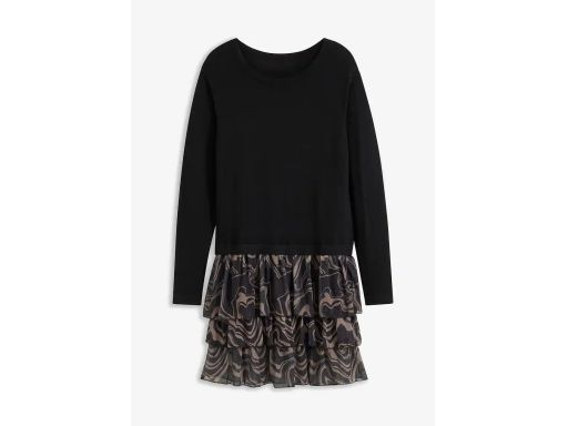 B.P.C sukienka dzianinowa 2w1 z siateczkowymi falbankami we wzory 40/4