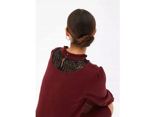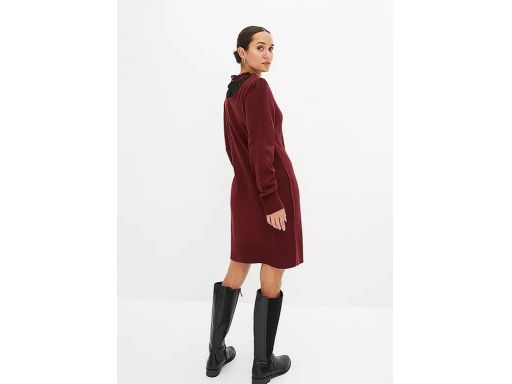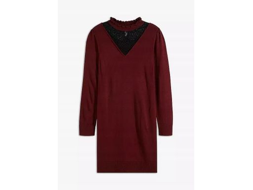 B.P.C sukienka dzianinowa bordowa z czarną koronką 32/34.