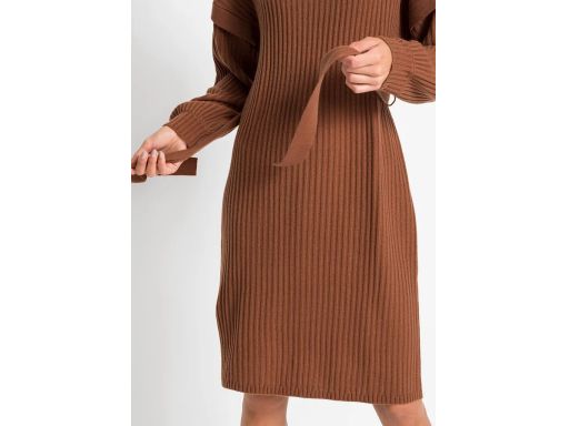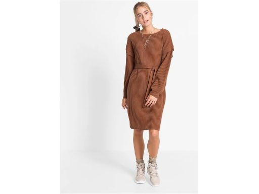 B.P.C sukienka dzianinowa brązowa z wiązaniem ^40/42