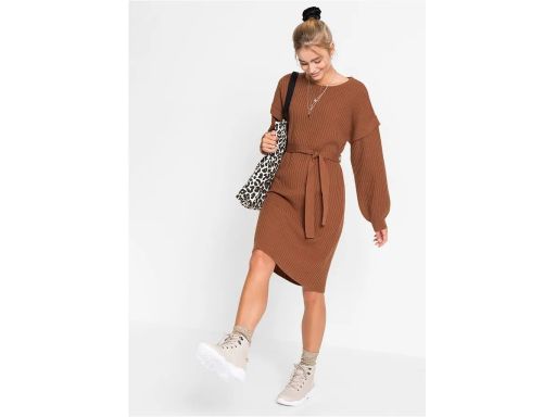 B.P.C sukienka dzianinowa brązowa z wiązaniem r.44/46