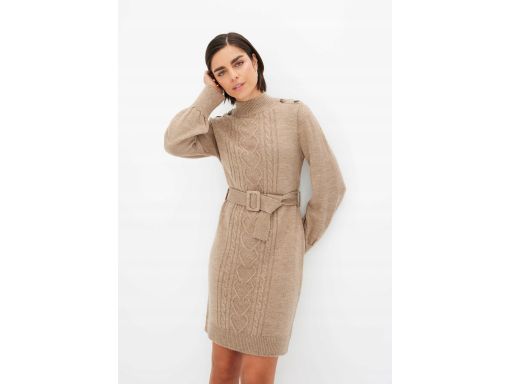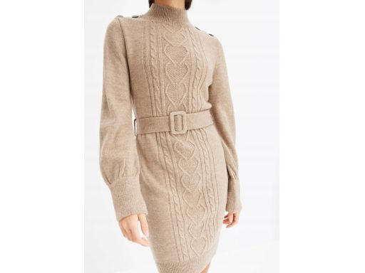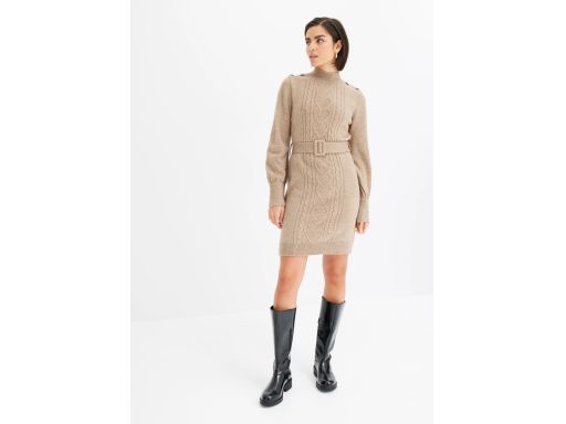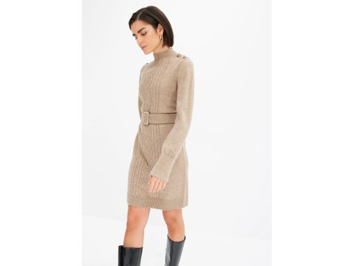 B.P.C sukienka dzianinowa ciemny beż ze strukturalnym wzorem ^48/50
