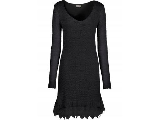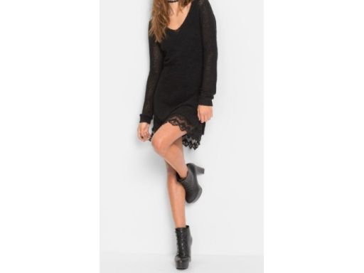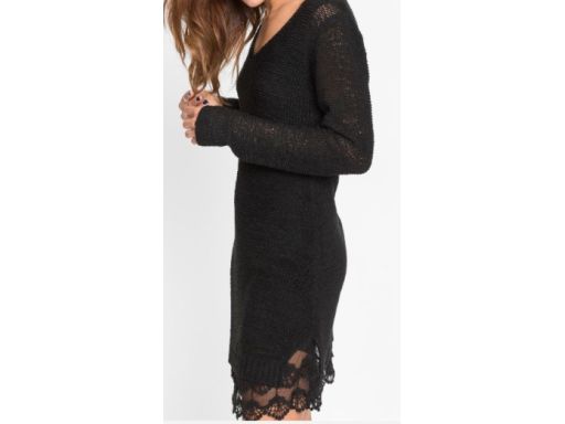 B.P.C sukienka dzianinowa czarna z koronką ^40/42